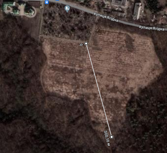 Але якщо відкрити мапу, то виявиться, що кладовище знаходиться на непарній стороні і не може бути під номером 24. Адреса вул. Ягідна, 24 - це зовсім інше місце за 850 метрів від кладовища: