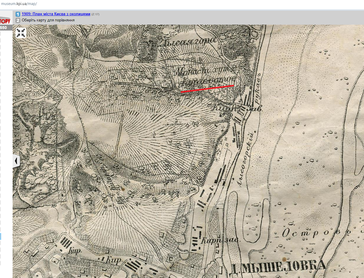 Карта 1909 року також свідчить про те, що монастирський хутір Корчувате знаходився під Лисою горою10.