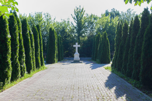 Відновлений історичний братський цвинтар на північ від Троїцької церкви Китаївської пустині.