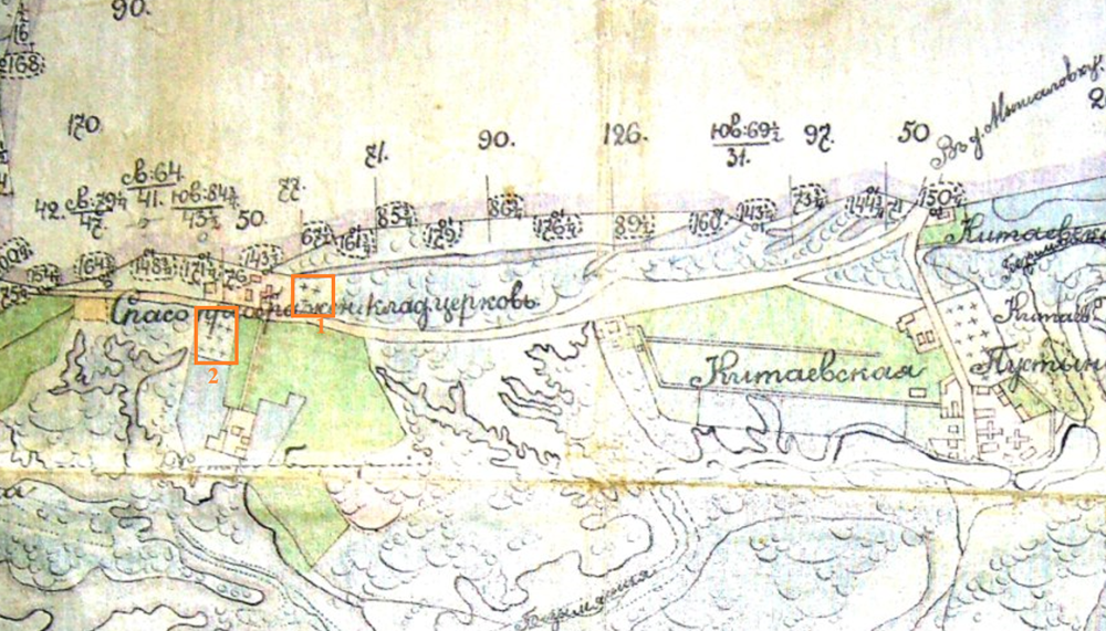 На мапі 1893 року під №1 позначено чернечу частину Преображенського цвинтаря, а №2 - це друга його частина "за оградой", на північ від Болгарського хутора (зараз - Корчуватський цвинтар)5:
