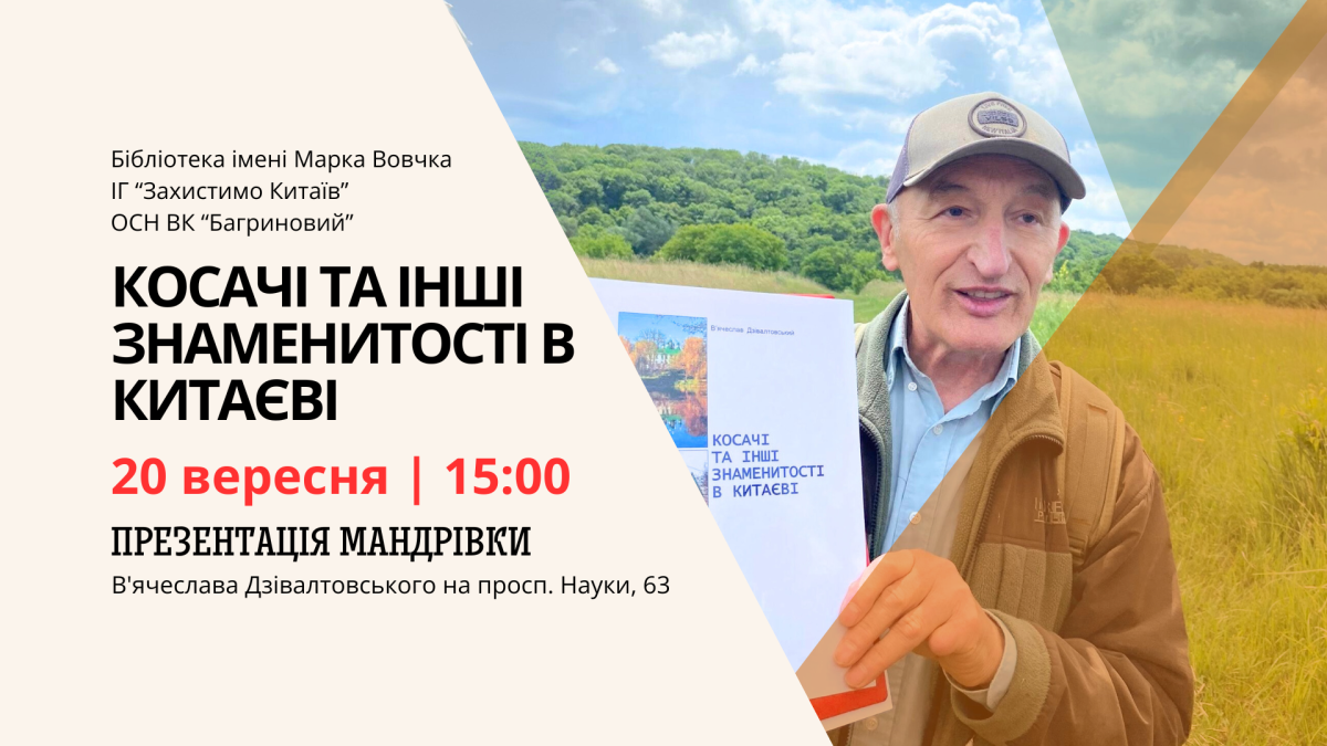 20 вересня у Бібліотека ім. Марка Вовчка пройшло ознайомлення з новим краєзнавчим маршрутом-дослідженням легендарного києвознавця Вячеслва Дзівалтовського "Косачі та інші знаменитості в Китаєві".