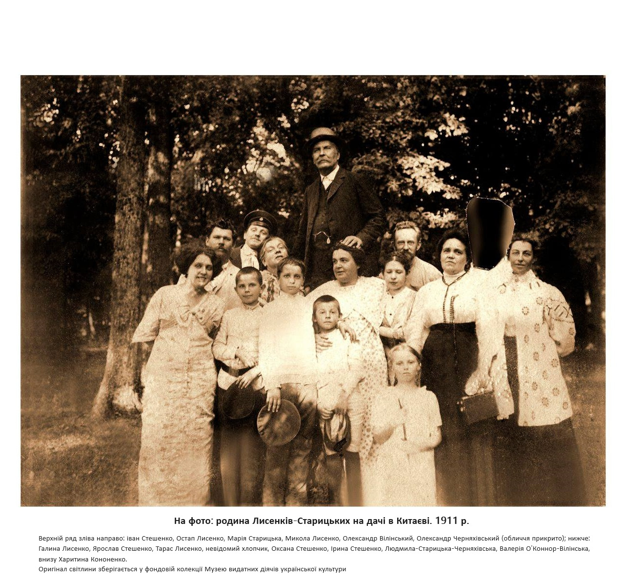 На фото: родина Лисенків-Старицьких на дачі в Китаєві, 1911 рік