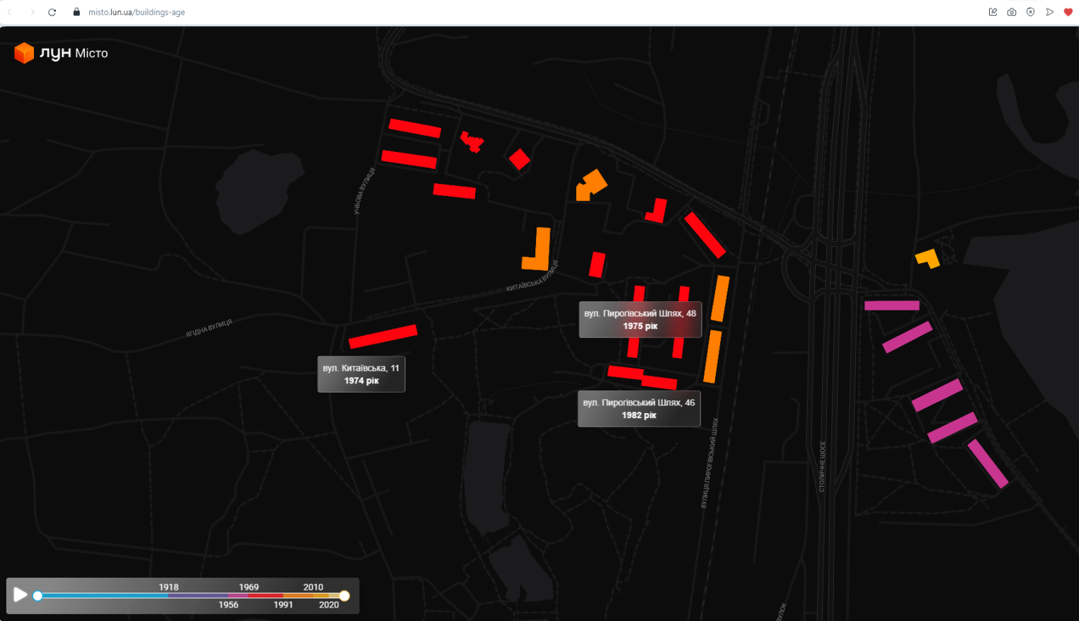 Карта ЛУН.Місто за посиланням:https://misto.lun.ua/buildings-age