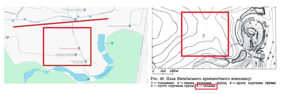 Ці перші 2 будинки побудували на землі, що позначена як територія поселення у книзі "Давньокиївська околиця" відомого археолога Івана Івановича Мовчана, який проводив на Китаївському археологічному комплексі дослідження у 1973 та 1988 роках: