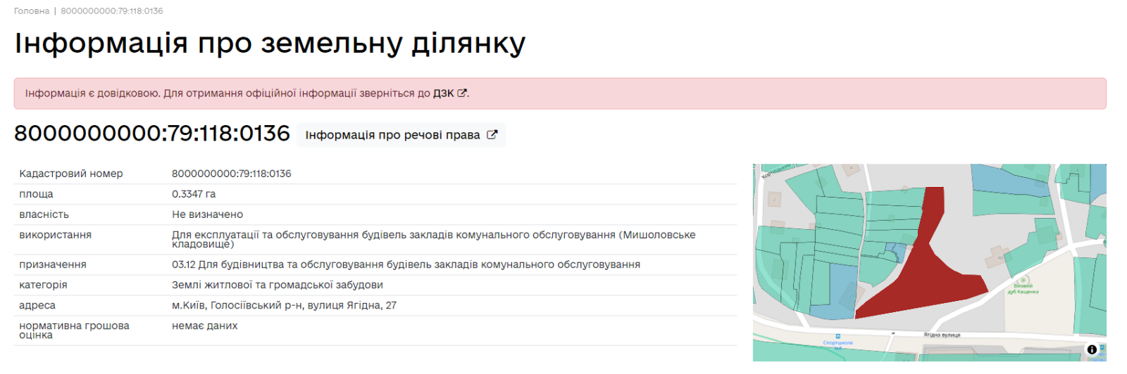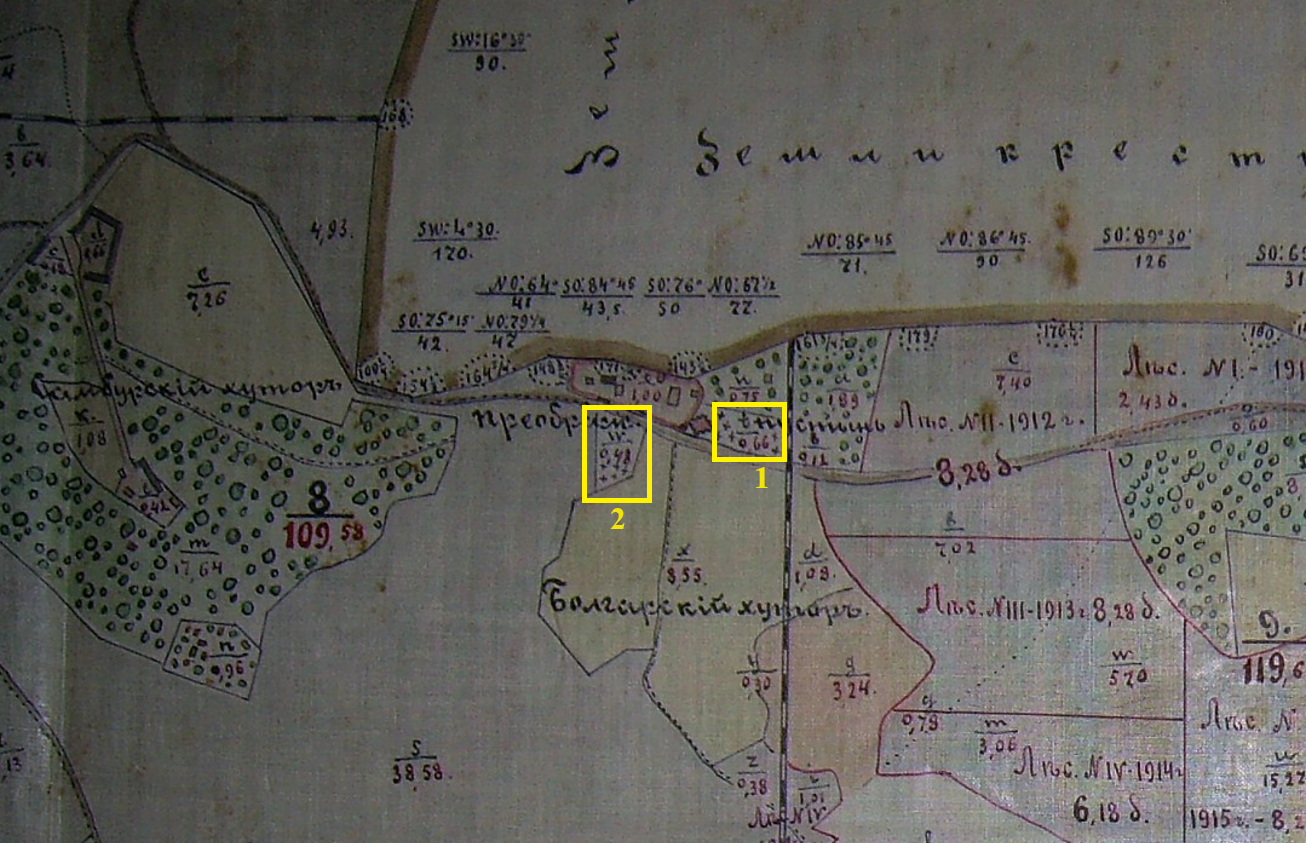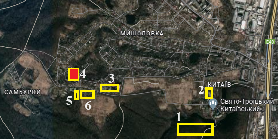 На мапі позначено межі земельних угідь Києво-Печерської Лаври. Бачимо, що кладовище Мишаловки тут не позначили: